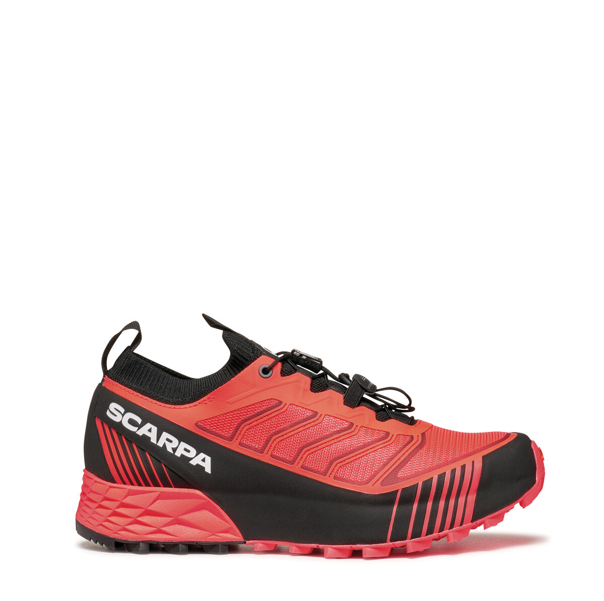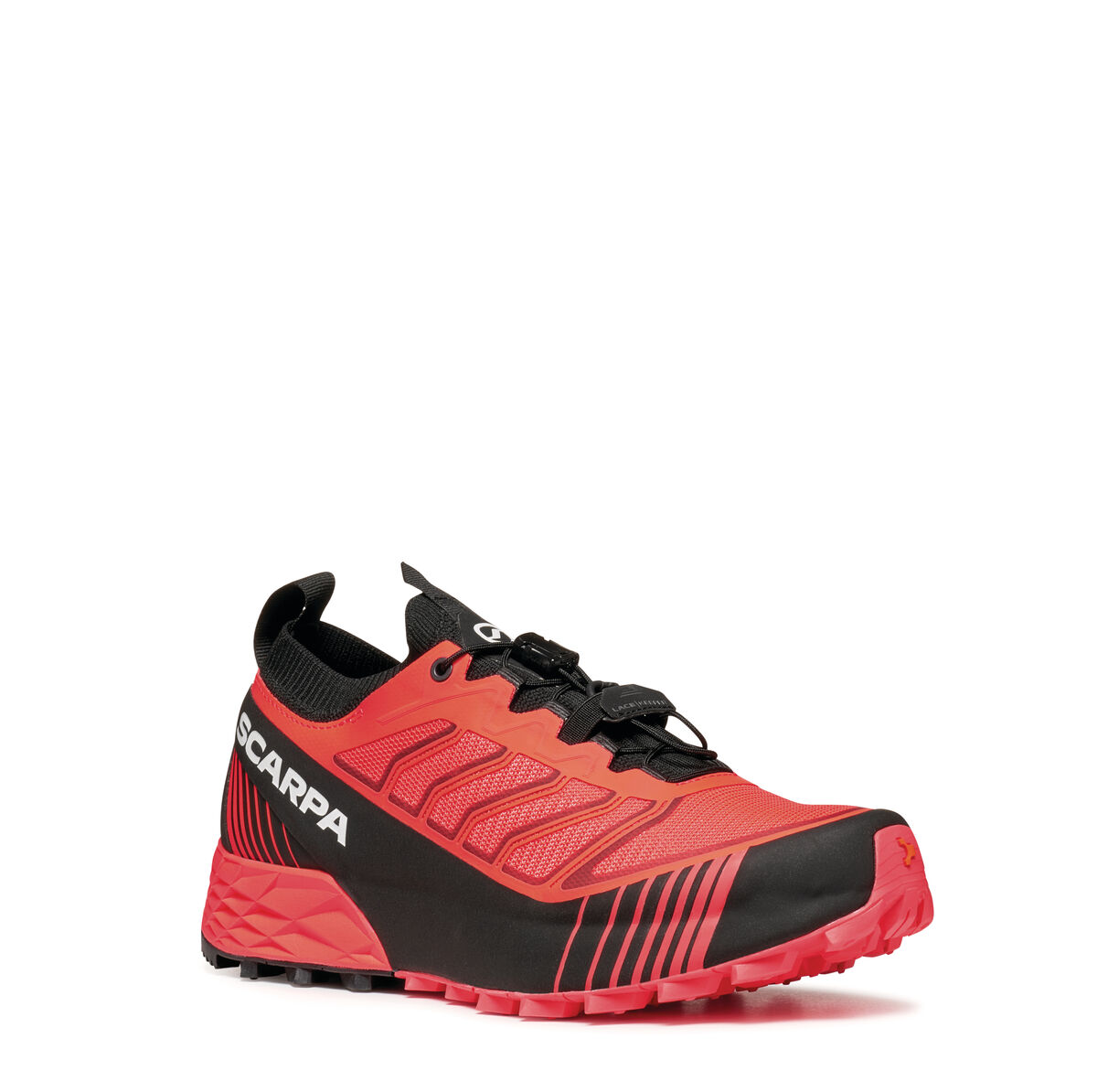 The upper is made of breathable and durable mesh, combined with SCARPA's EXO technology, forms an integrated exoskeleton to support the foot laterally. The integrated tongue and collar construction made as a sock, perfectly wraps the foot and prevents the intrusion of debris without constricting the ankle, eliminating compression points and ensuring maximum comfort and precision. A key element is the innovative 3S FRAME that fully wraps around the structure of the shoe, offering superior support and optimal protection, particularly effective in the unstable terrain situations typical of mountain running.