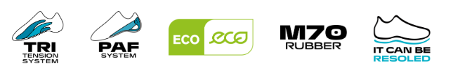 Системата PAF е иновативна система за петата, която помага както да разпредели силата на напрежението на петата, така и да увеличи прилягането на петата. Системата за активна плъзгане с три напрежение осигурява цялостна опора на крака, докато е под натиск, и поддържа гъвкавост за размазване.