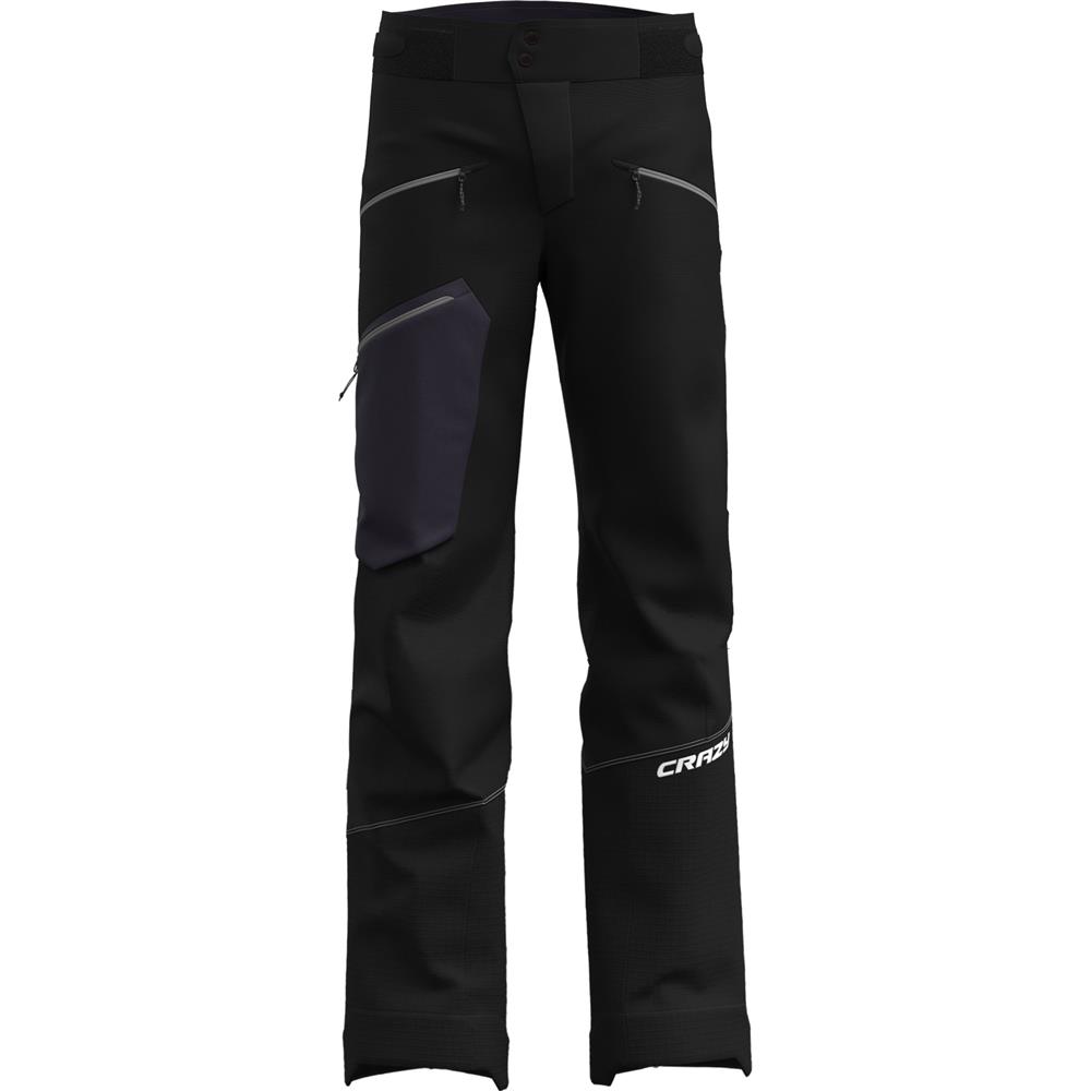 The CRAZY PANT NEUTRON is one of the most technical mountain pants in the Crazy Idea lineup, tailored for demanding outdoor activities such as ski touring and mountaineering in cold, harsh environments. Crafted from softshell fabric with a 2-layer membrane, these pants deliver reliable windproof and water-repellent performance while remaining breathable and flexible for active motion.