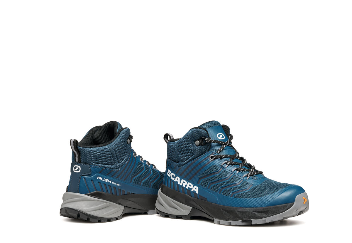 UPPER: Technical mesh with heat-sealed film external cage for more support, designed by SCARPA. Internal toe cap for more protection. Collar autofit 3D padding, wrapping the ankle for comfort and protection.
