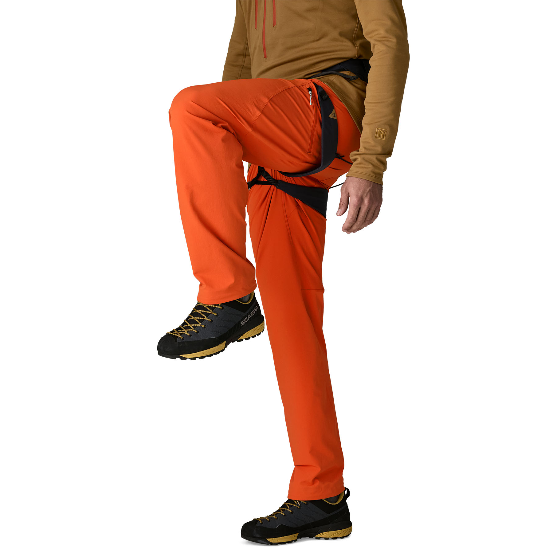 Low-bulk, pull-on waist, with Micro OppoSet® adjustment to dial in the fit, is harness compatible and comfortable enough to climb in all day