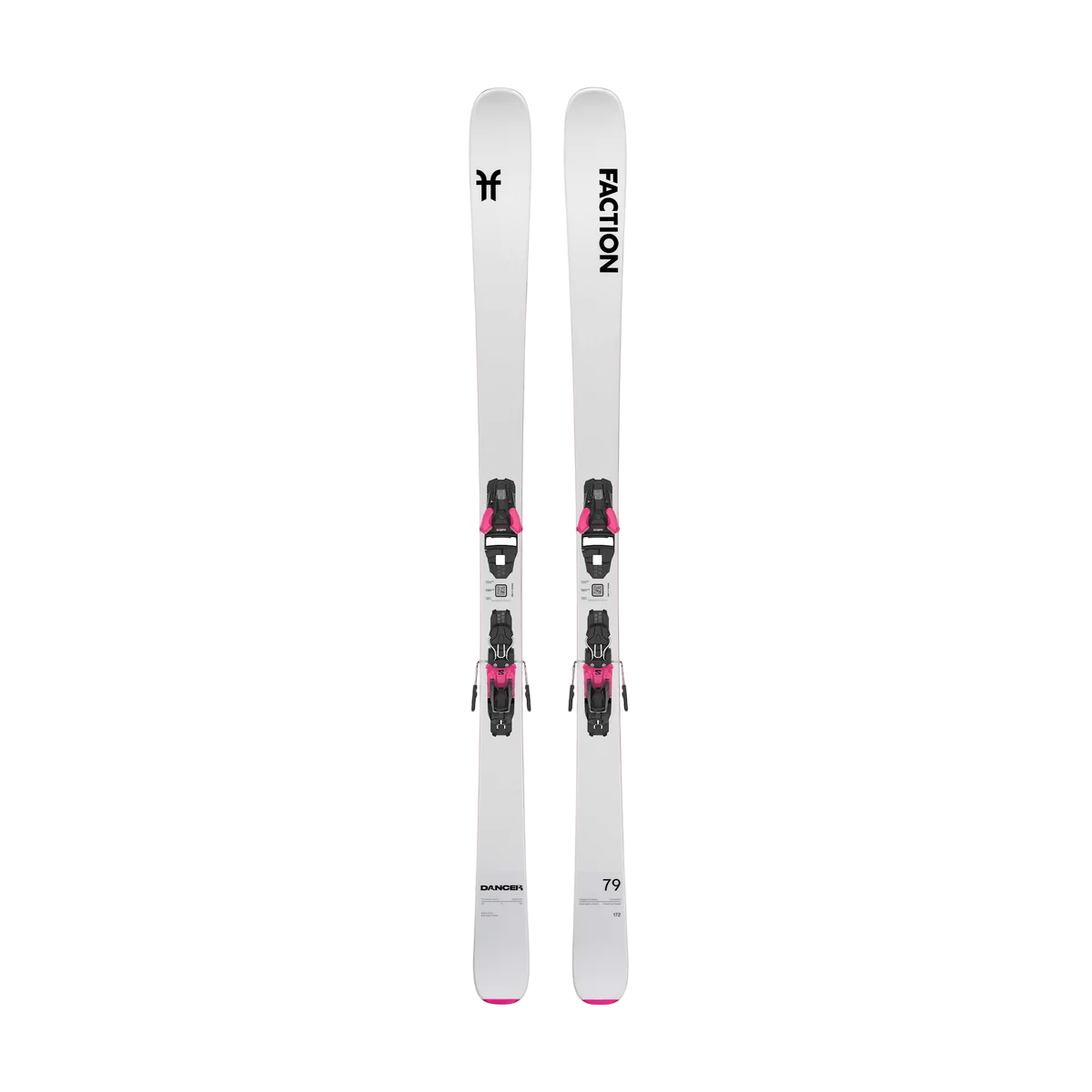 The Faction Dancer 79 Ti SYS Pink skis are powerful and precise piste skis with Titanal reinforcement and pre-mounted bindings, perfect for advanced skiers.